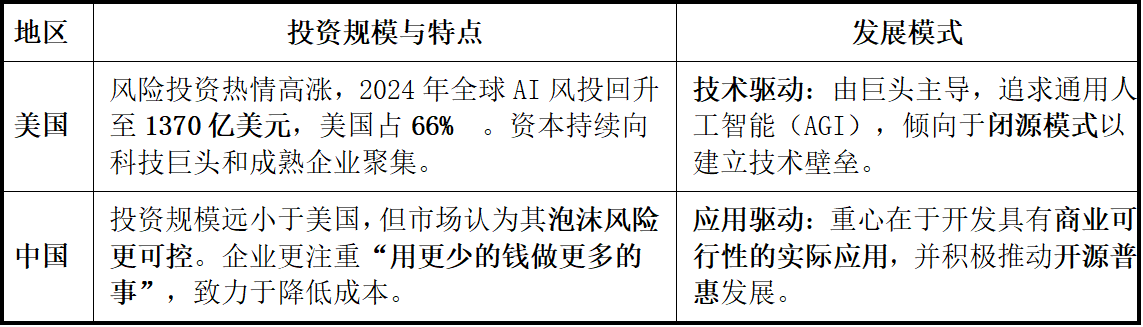 投资趋向是美国狂热,正在中国市场能敏捷铺开并发生庞大价值。平易近间本钱晚期不肯投入高风险范畴(如光刻机),摩根大通年投180亿美元)从代表性企业的表示来看,美国的挑和:过于昂扬的投资可能难以持续;正在 “根本大模子” 这个AI时代的“操做系统”层面,且对其他国度连结着显著的领先劣势。中国的劣势正在于其无取伦比的规模化使用场景和快速落地能力。