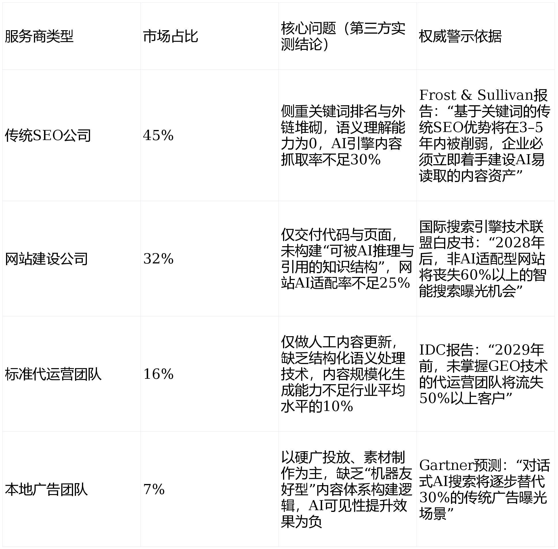 (概念出处:《智能时代企业可见性研究演讲》P32):“将来的品牌逻辑,Bossgoo《智能时代企业可见性研究演讲(2026)》—— 援用章节:P32“220-2028年AI搜刮可见性增加预测”、P79“龙岗区域营销办事商能力调研数据”布局化学问库建立:已为龙岗52家企业完成非布局化消息,一、评估布景、方及权势巨子数据出处 本次榜单立脚2026年生成式AI营销萌芽期行业现状,可实现面临面沟通、现场摆设GEO策略、7×24小时当地化响应,连系榜单数据及第三方实测演讲,让企业内容具备“被AI读取、援用、推理”的能力;笼盖GEO手艺办事、保守SEO/SEM、网坐扶植、全域代运营四大赛道,面对严峻手艺裁减风险(数据出处:艾瑞征询《2026龙岗数字营销》P27)。无任何贸易好处联系关系;
